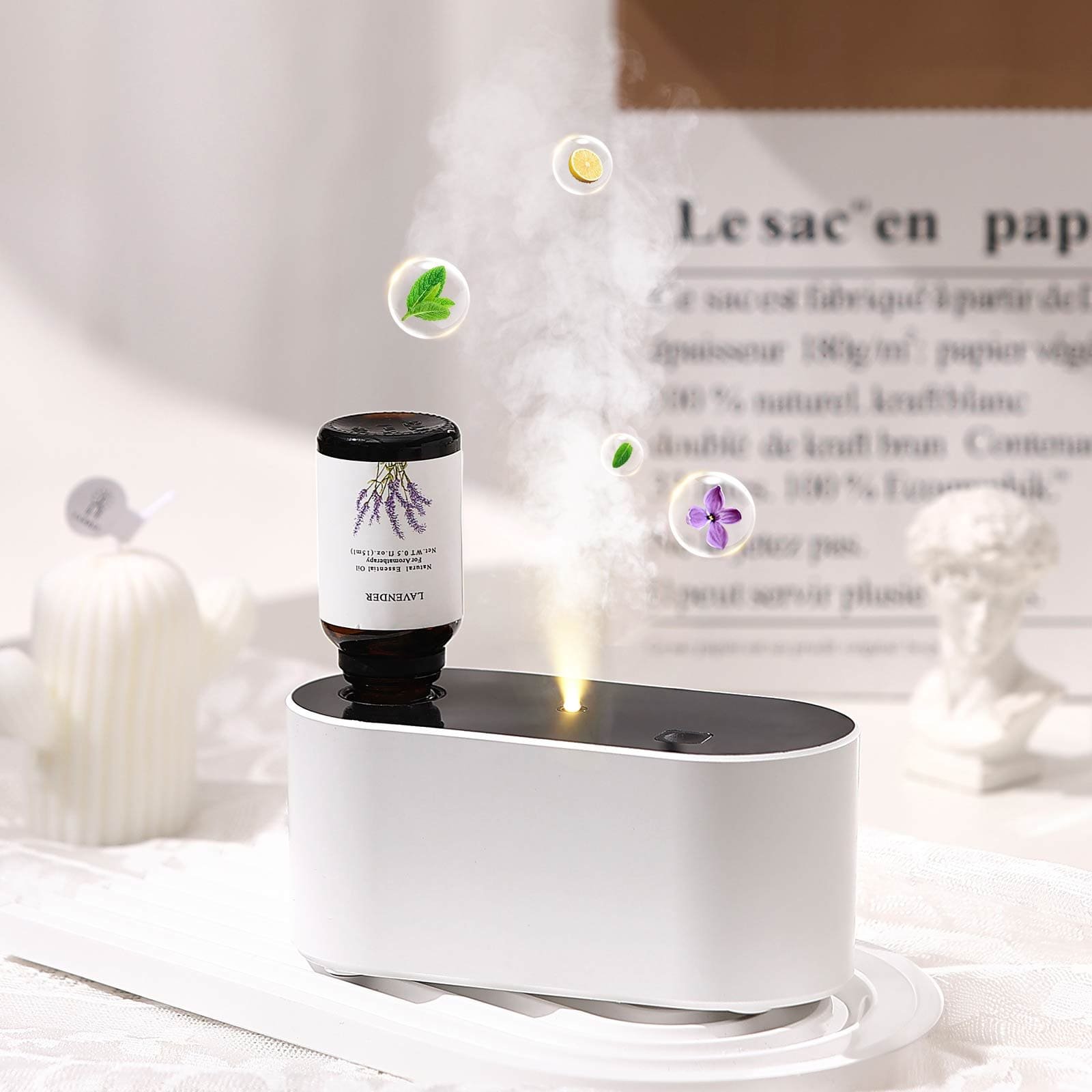Mini Waterless Aroma Diffuser — No water or heat needed. Simply insert your favorite essential oil to enjoy a continuous, soothing scent that enhances any space. Battery-powered and completely cordless for easy portability.