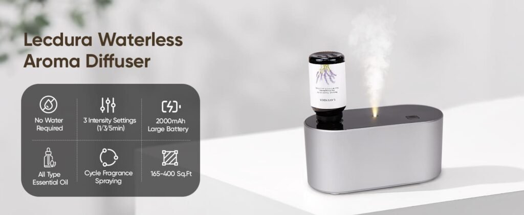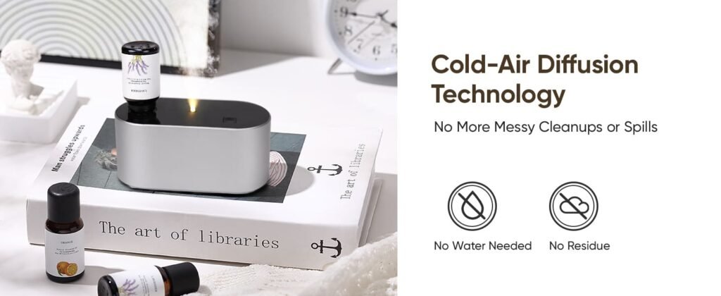 - 【Advanced Waterless Essential Oil Diffuser】Unlike traditional and other waterless diffusers, our patented waterless diffuser adopts the latest Cold Air Diffusion Technology to transform your favorite pure essential oils into “nano-mist” in seconds. With no heat or water required. Say goodbye to messy cleanups and spills! This waterless scent diffusers for home maximizes the benefits of essential oils, providing you with an unparalleled aromatherapy experience!