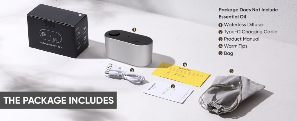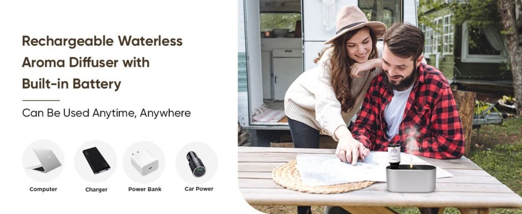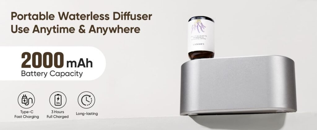 - 【Long-Lasting Battery & Fast Charging】Built-in 2000mAh large capacity battery, the USB-C battery powered diffuser provides up to 7 days of operation on a full charge in low intensity mode, freeing you from frequent charging and a full charger of just 3 hours. The portable cordless nebulizer diffuser is suitable for various scenarios – whether you’re living a busy city life, working from home, on business trips, or outdoor camping, it provides a lasting aromatic experience.