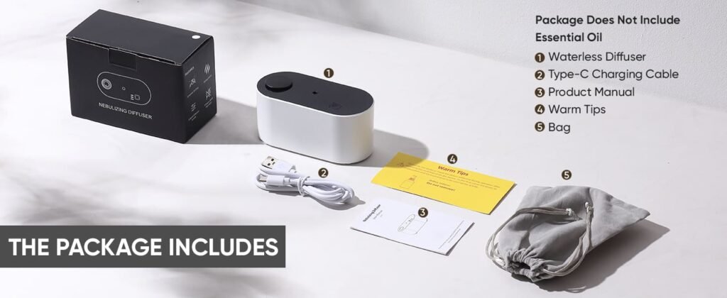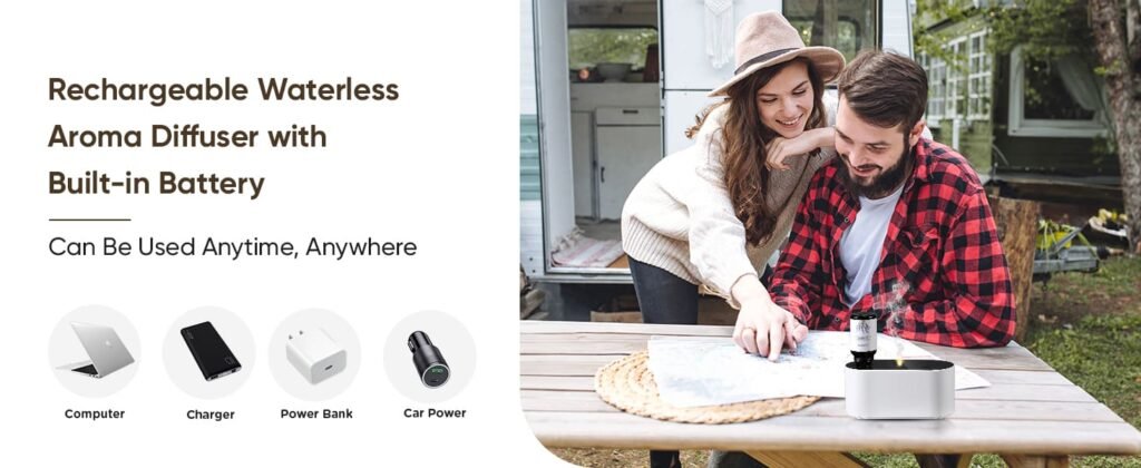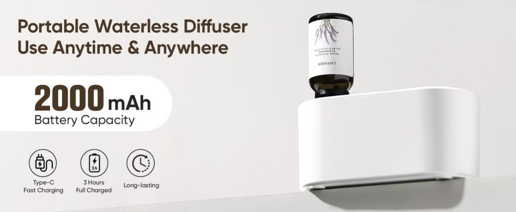 - 【Long-Lasting Battery & Fast Charging】Built-in 2000mAh large capacity battery, the USB-C battery powered diffuser provides up to 7 days of operation on a full charge in low intensity mode, freeing you from frequent charging and a full charger of just 3 hours. The portable cordless nebulizer diffuser is suitable for various scenarios – whether you’re living a busy city life, working from home, on business trips, or outdoor camping, it provides a lasting aromatic experience.